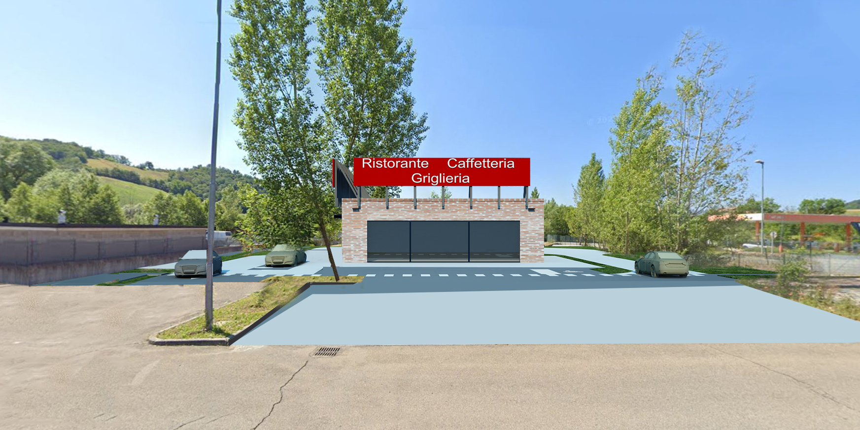 Le opere di preparazione dell’area consistono in urbanizzazioni propedeutiche alla successiva edificazione del nuovo ristorante: