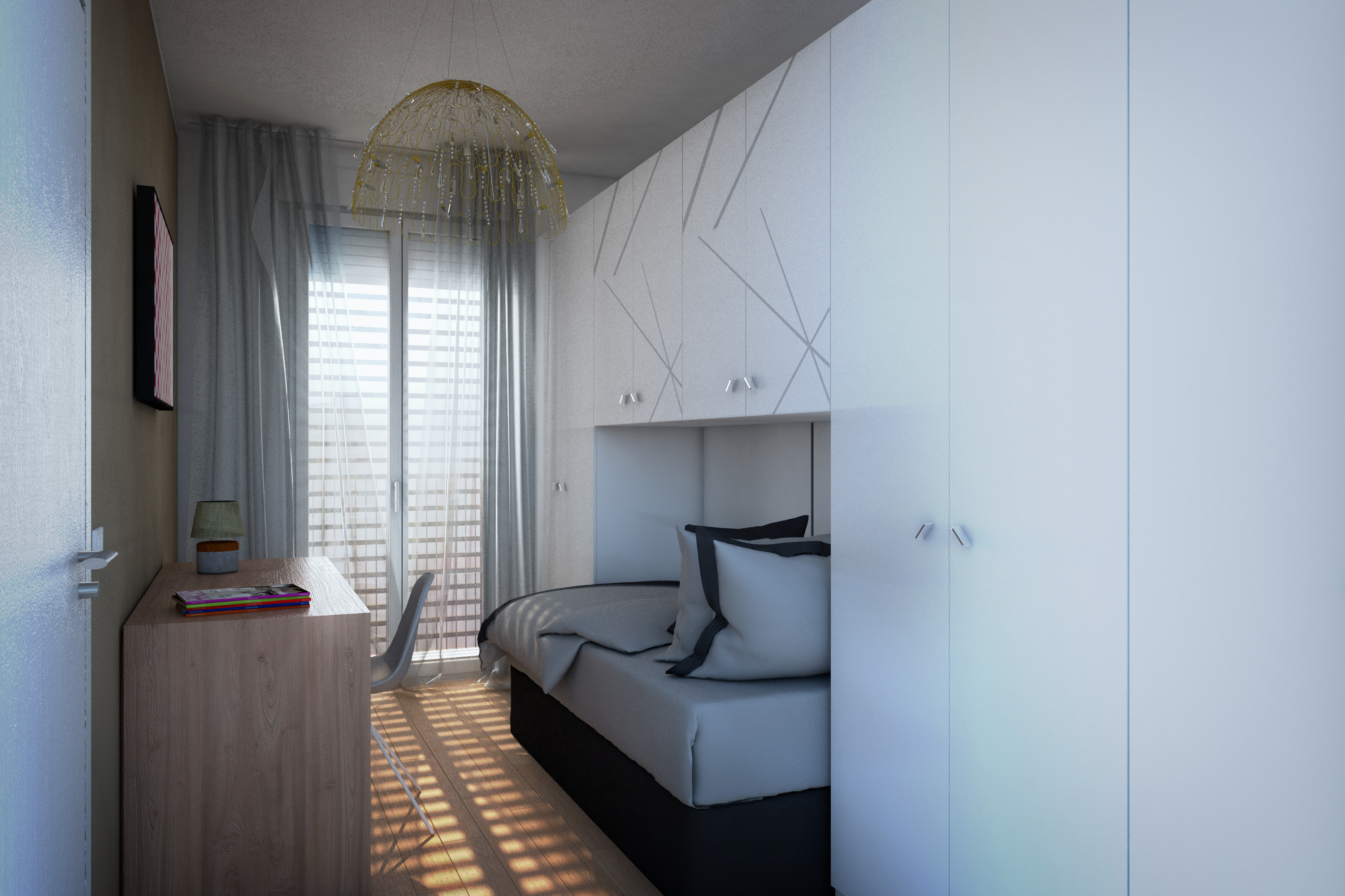 I trilocali avranno un’importante zona giorno con cucina a vista, zona pranzo e balcone, un bagno padronale, una camera singola con area studiolo e balcone, in conclusione una spaziosa camera matrimoniale.