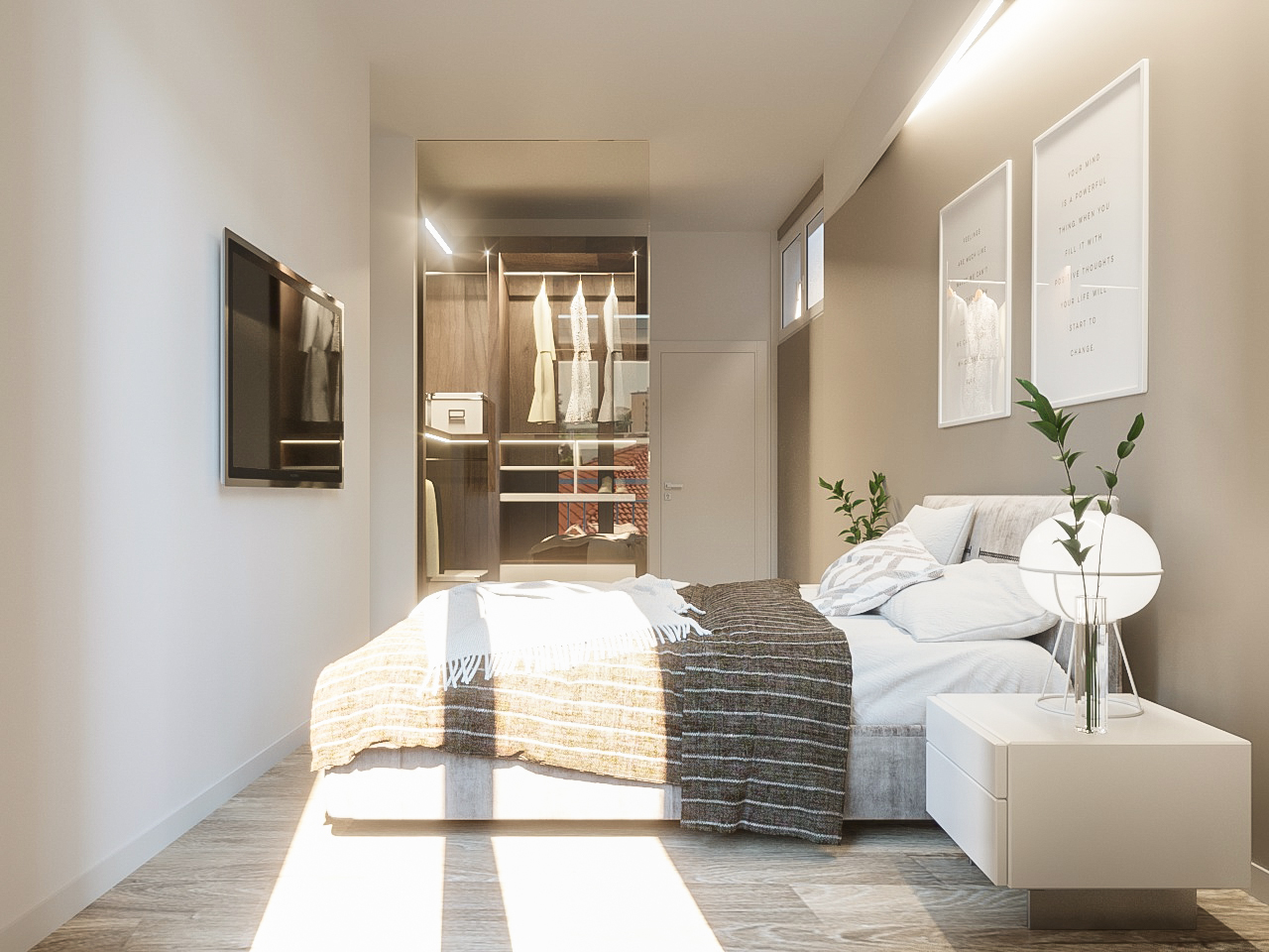 Il trilocale avrà un’importante zona giorno con cucina a vista e lavanderia, un bagno di servizio, una camera doppia dove potranno essere ampiamenti disposti 2 letti con relative scrivanie per l’eventuale famiglia con figli, in conclusione la camera matrimoniale con cabina armadio a vista e bagno padronale finestrato.