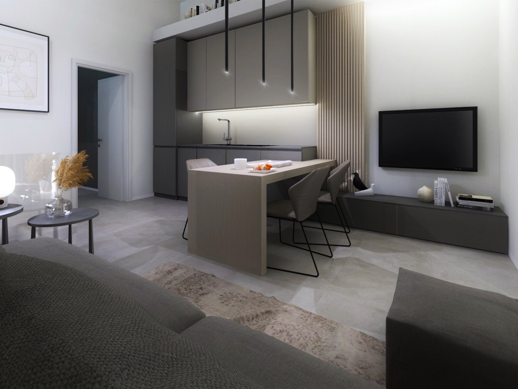 Si opererà per realizzare una residenza pari al nuovo, con rifacimento completo di pavimentazioni e rivestimenti, nuovi sanitari ed adeguamento impiantistico. La pavimentazione sarà in Gres fine porcellanato simil pietra serena, di grande/medio formato, cosi come i rivestimenti del locale bagno e della zona cottura.